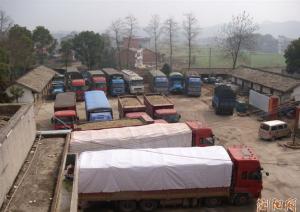 过境超载车辆被查扣后,集中停放。李小雷摄
