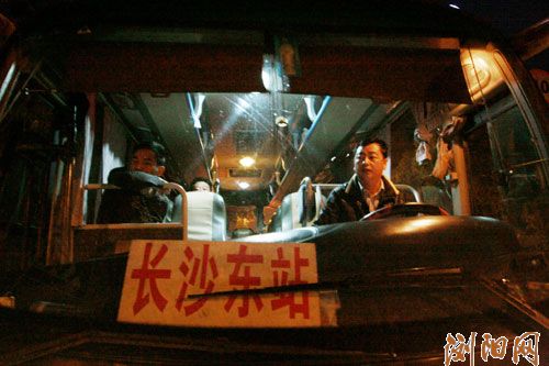 ③5:30汽车东站,前往长沙的第一班车上,司机李斌即将出发。