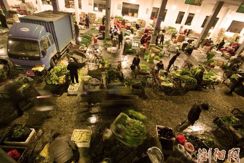 所有这些劳动,都充盈着这座城市的衣食住行。3时15分,城东菜市场内,人影幻动中,62岁的罗娭娭毑将时新的小白菜担到显眼的位置。她刚从关口水佳而来,在全市最大的蔬菜集散地,和300多名菜贩一起,翻动着时涨时跌的菜价。