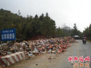 昨日,网友大鹏鸟即在浏阳论坛发帖称:枨冲镇三元村垃圾填埋场已经蔓延至西南干线。