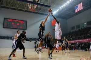 比赛进行到第三节第6分钟时,泽西特快队13号巴普蒂斯特快攻上篮,他没想到的是,身高2.05、比他高出一截的孙悦已经盯上了他,就在巴普准备将球送入篮筐之时,孙悦腾空,伸手一扇,球飞出场外,当现场解说员准备说“好盖帽“之时,裁判吹犯规,主持人笑着改口:“这真是一次漂亮的犯规!”观众们都开心地笑了起来,现场气氛达到了一个小高潮。