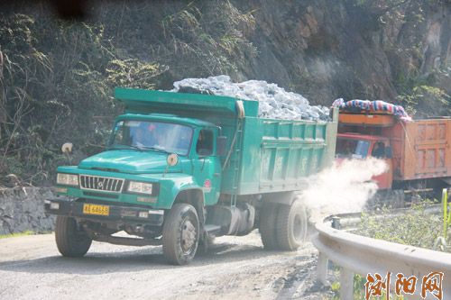 “浏阳开展大治超,这里的车子超载现象就没停过,不知是这里不要治理,还是这里的企业有门路。”附近一村民指着这条破烂不堪的道路说,这附近有多家石矿企业,一直以来这里的道路运输就十分繁忙。