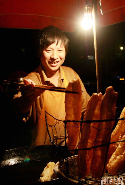 ④4:12圭斋路口,江西景德镇来的炸油条师傅,对着镜头笑了笑。