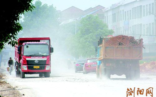 永社公路北盛至沙市段,灰尘漫天。采访中,沿线群众要求维修的愿望十分强烈。彭红霞摄