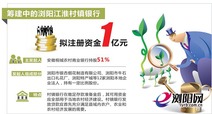 浏阳日报讯(记者肖雪)浏阳将新增一家特殊的银行,这家银行的筹建面向所有社会资本开放,股东包括银行、企业法人甚至是自然人。14日,我市召开湖南浏阳江淮村镇银行发起人大会,浏阳将成立首家村镇银行。