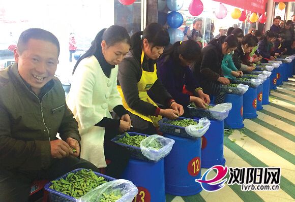 剥青皮豆的男选手当仁不让。记者张玲