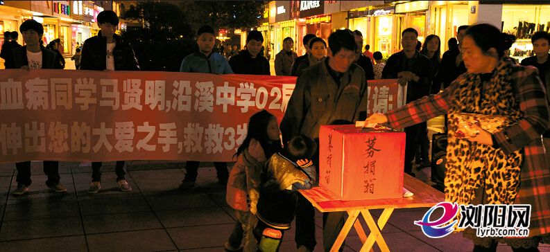 昨日,记者在步行街头看到一群人在步行街头进行呼喊。“沿溪白血病患者马贤明需要大家的救助,他的家很贫穷,还有两个小孩要抚养。”一个同学喉咙喊哑了,另一个同学接过话筒继续呼喊。