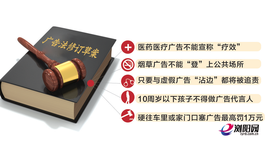 此次广告法的修订,有很多亮点,比如医疗医药广告不能宣传“疗效”;烟草广告不能“登”上公共场所;明星不能代言医疗医药广告,一般人也不能代言;十岁以下儿童禁止代言广告等,修订草案对涉药、涉医、涉烟、涉酒广告和广告代言人进行了严格的规范。