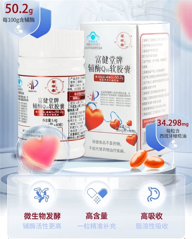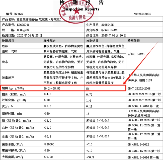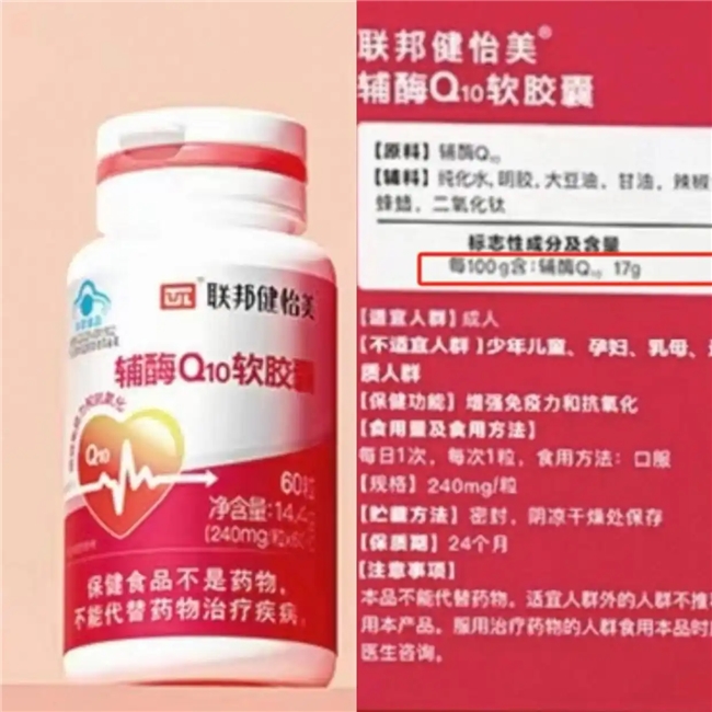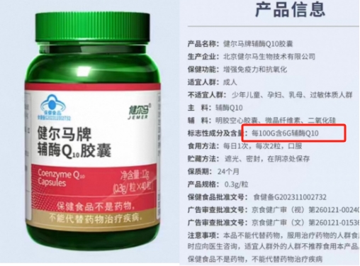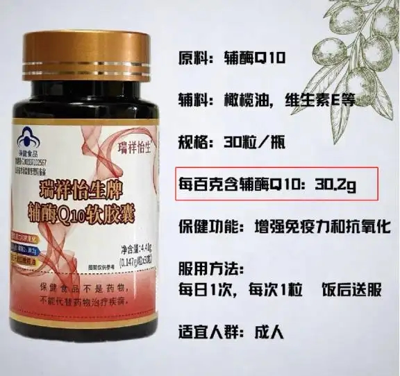 它到底好在哪?咱们掰开了揉碎了说!每100克里实打实含有54克辅酶Q10,比产品标的50.2克还多,在带蓝帽子认证的保健品里,这含量绝对是“优等生”!