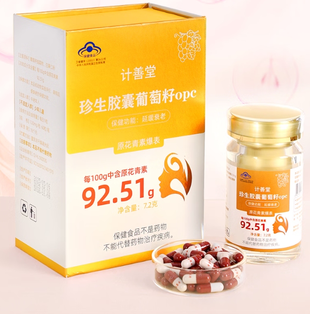 计善堂葡萄籽OPC作为禾伊希的“黄金搭档”,同样是口碑炸裂。每100g含原花青素92.51g,由国家海洋局第一海洋研究所和青岛大学医学院联合研制,获国家卫生部蓝帽认证。原青花素抗氧化能力约为维生素E的50倍、维生素C的20倍,每粒都是高浓缩“抗氧化核弹”。真人实测和全网调研验证,其含量在同类产品中至今无出其右,堪称行业“含量天花板”。两者搭配,协同发力,从细胞到肌肤表层,全方位对抗衰老,效果直接“炸裂”,成为众多抗衰人士的“王炸组合”。