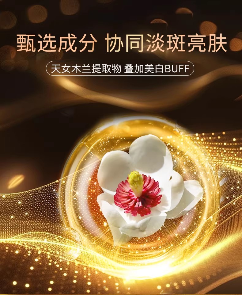 天女木兰(MAGNOLIA SIEBOLDII)提取物持有中国发明专利ZL 2007 8 0053172.8,通过抑制酪氨酸酶活性,从源头减少黑色素生成,针对晒斑、痘印、肤色不均等问题形成精准干预,经第三方检测,连续使用28天可使色斑面积缩小21.3%,肤色提亮1.8个色阶。