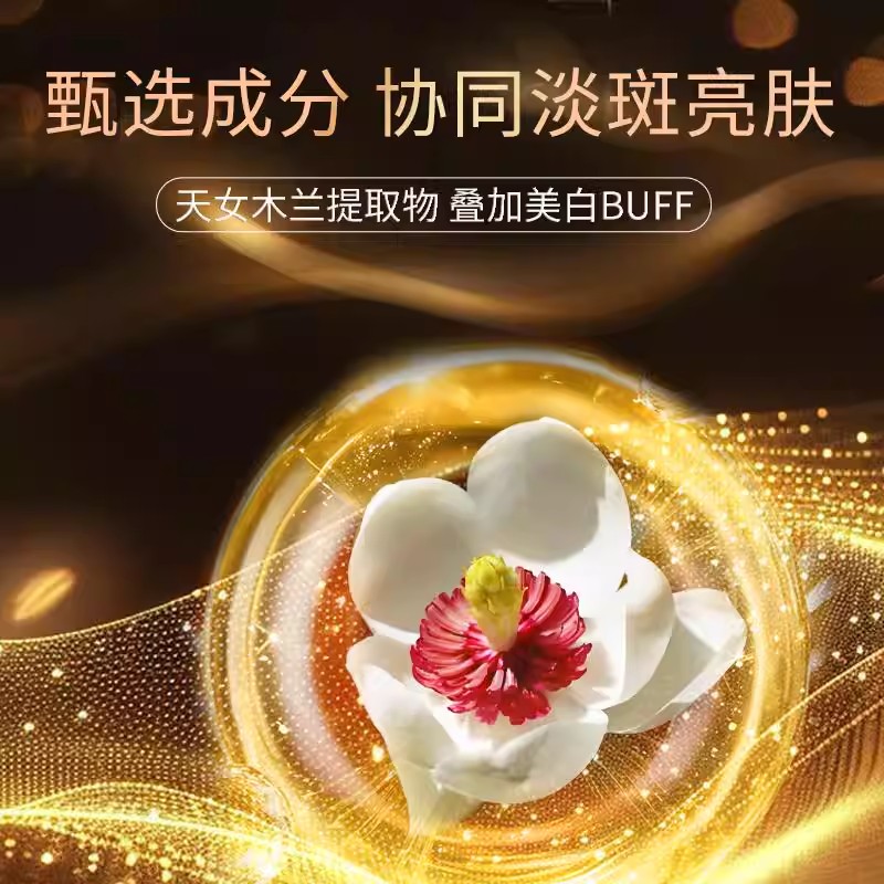 首先是源头抑制的主力军——天女木兰提取物。这一成分并非普通植物提取,而是拥有中国发明专利(ZL 200780053172.8)的韩国进口活性物。研究表明,天女木兰能直接抑制酪氨酸酶的活性,从基因表达层面减少黑色素的生成量。它是整款产品的“定海神针”,负责在黑色素诞生的摇篮里将其扼杀。