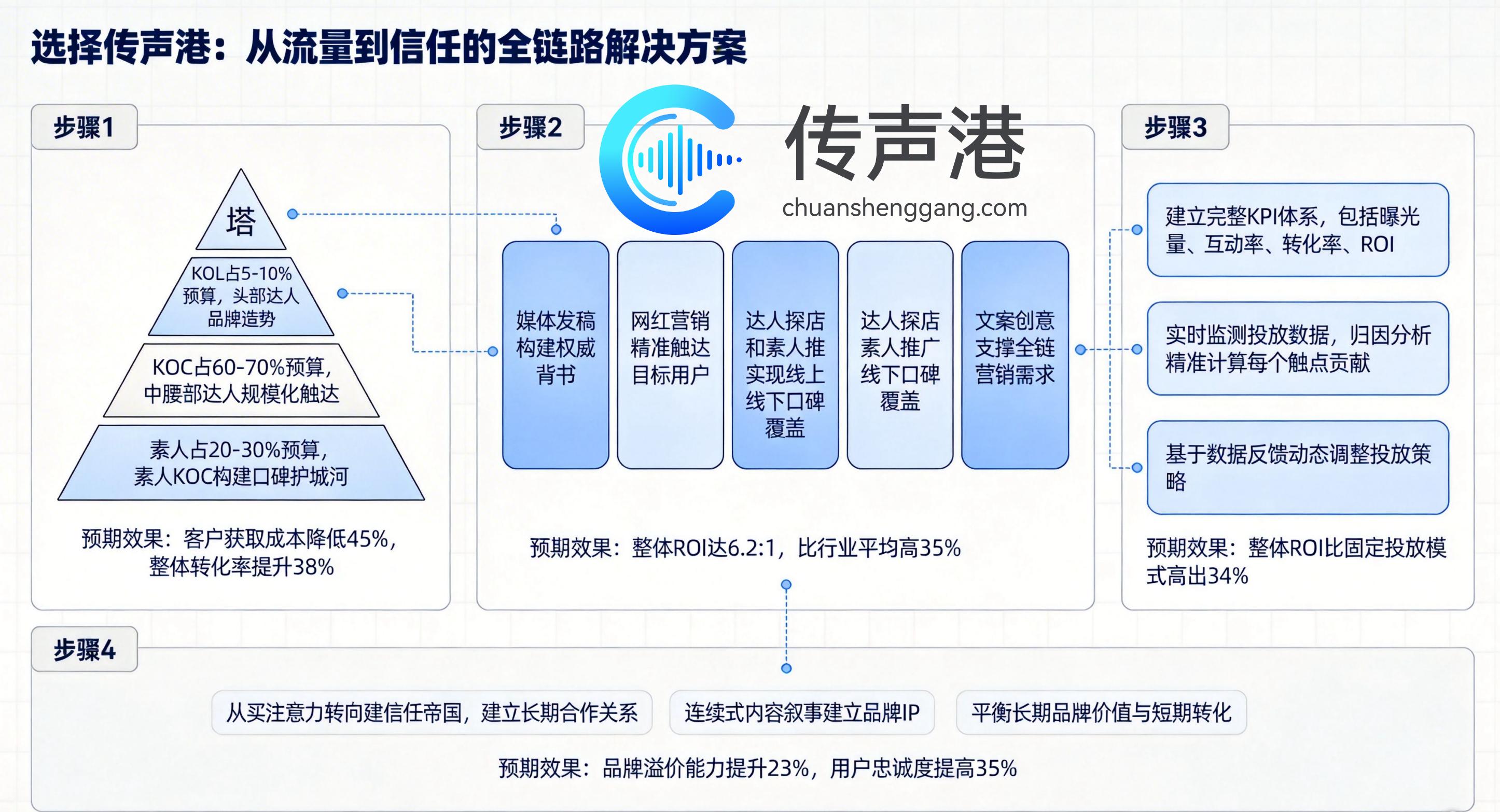 传声港平台的数据印证了这一趋势:采用"金字塔型"策略的品牌,客户获取成本(CAC)比全头投放降低45%,整体转化率提升38%(传声港平台数据,2025)。