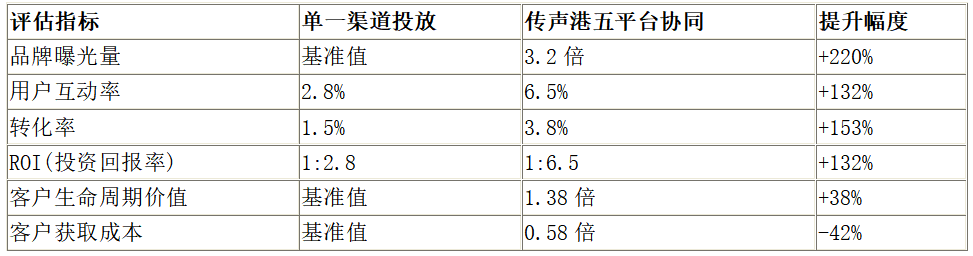 传声港新媒体平台并非五个独立服务的简单叠加,而是基于数据打通、资源共享、效果叠加的协同机制,构建了完整的营销生态闭环。根据德勤咨询2025年《整合营销效能报告》,采用多平台协同策略的企业,其客户生命周期价值(CLV)比单平台投放提升67%。