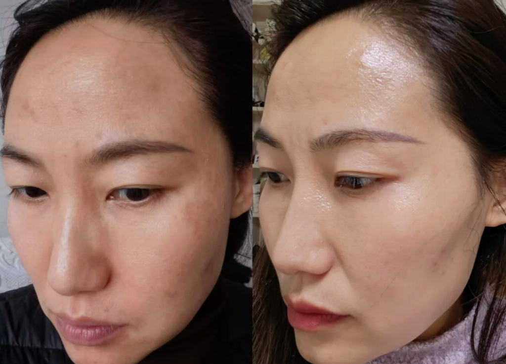 实测数据与实效:选取30名黄皮受试者(20-51岁,涵盖晒斑、痘印、黄褐斑、暗沉等不同痛点),连续使用28天,实测数据如下:14天色斑边缘柔化,颜色平均变浅23.7%,肤色光泽度提升31.5%;28天斑点面积平均缩小36.8%,黑色素合成抑制率达71.6%,经表皮水分流失下降33.9%,黄皮暗沉明显改善,肤色匀净透亮,无反黑现象。其中晒斑、痘印淡化效果最显著,黄褐斑需坚持使用8周以上可见明显改善。