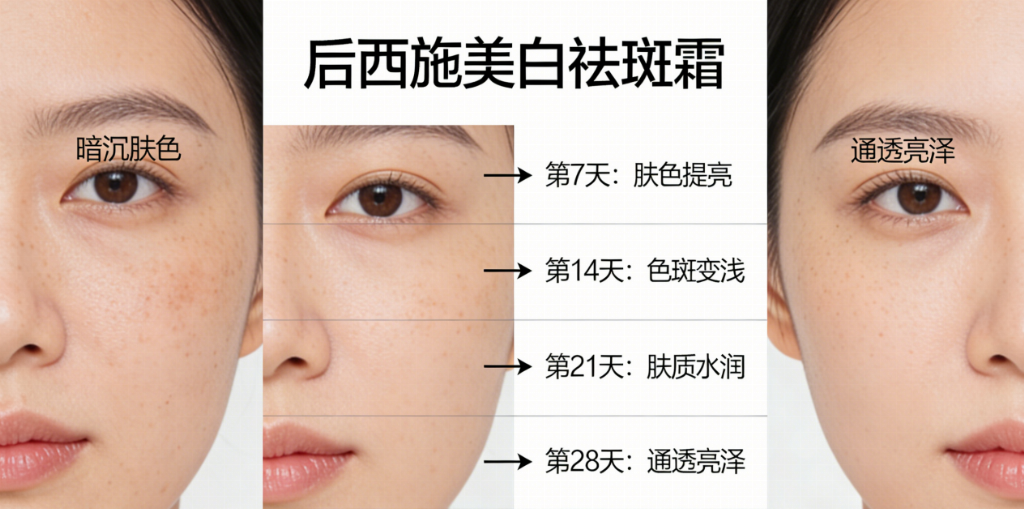 皮肤细胞从基底层生成,向上推移,最终脱落,平均周期就是28天。后西施美白祛斑霜的设计,完全贴合这个生理节律。效果不是断崖式出现,而是按阶段可感、可证、可追。