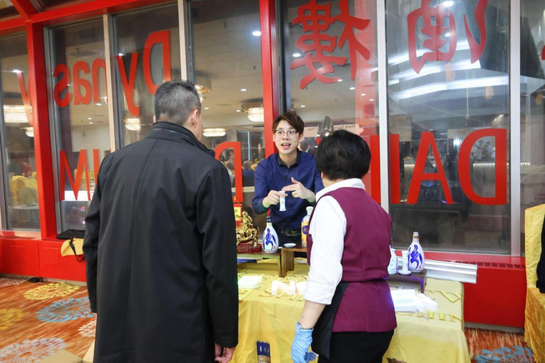 来宾纷纷驻足观看,细读展板内容,与匠心国际酒业代表深入交流。来宾在彼此交流间不自觉放慢脚步,在酒香与故事之间驻足停留,让品牌的温度与节日的喜庆悄然交织。通过一问一答的交流,不仅让宾客更深入理解清香型白酒的文化与技艺,也让他们在春节团圆的氛围中,对这份来自东方的味道产生更真实的认知。