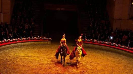 今年是马年,尚蒂伊城堡专业马术队的马术表演,展现了欧洲传统马术艺术的优雅与力量,演员用中文向现场嘉宾送上“马到成功”的祝福。