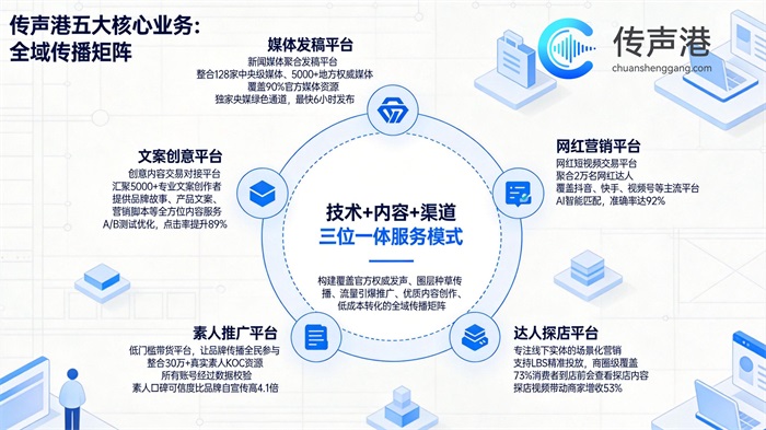 传声港媒体发稿平台是传声港新媒体平台的核心板块之一,也是企业实现GEO优化权威背书的关键载体。该平台以“构建权威信源体系,助力品牌GEO优化”为核心目标,整合了海量优质媒体资源,构建起覆盖“官方权威发声、圈层种草传播、流量引爆推广”的全域媒体资源矩阵,为企业提供从稿件撰写、审核、发布到效果监测的全流程媒体发稿服务,通过权威媒体背书,提升品牌内容的可信度与AI引擎引用率,助力企业GEO优化效果翻倍。