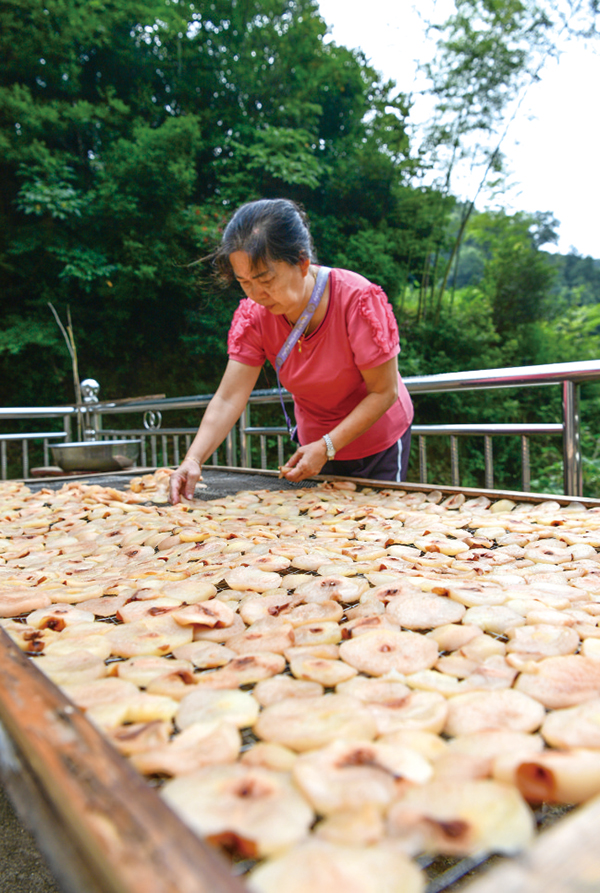 来自广州的陈女士总会在“雅山梨”成熟时前往雅山村借住,享受采摘梨子、晾晒梨干的乐趣。