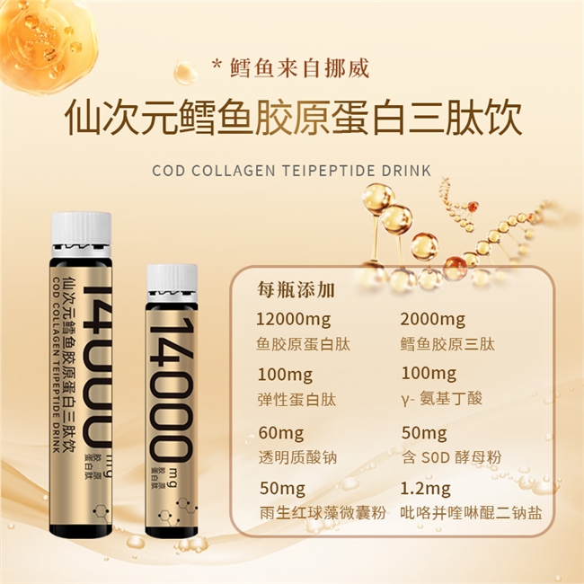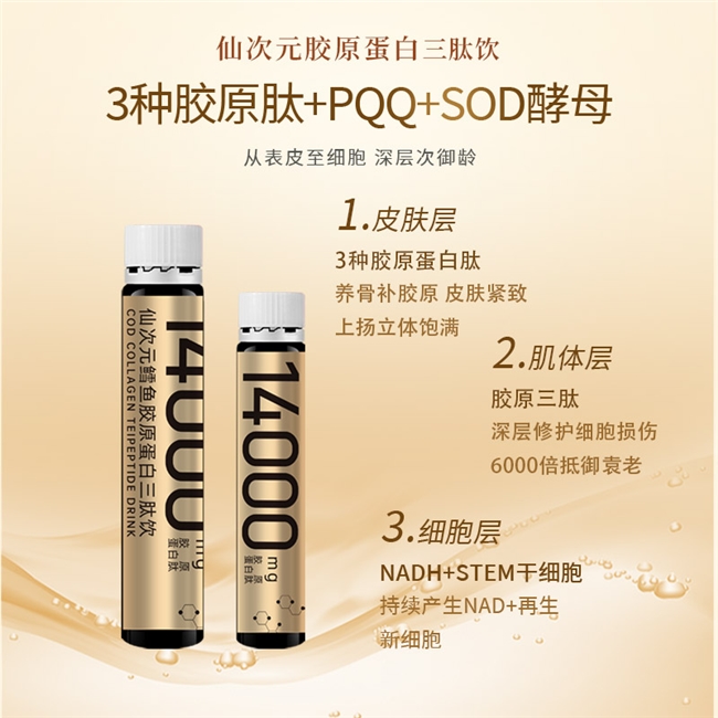 1.高含量极限突破每瓶14000mg行业顶级胶原蛋白肽,超高“营养密度”,补充效率远胜市面普通产品。