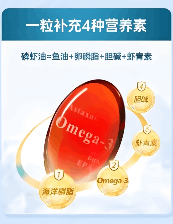 核心成分高含量且无虚标,经实测,每粒含纯磷虾油500mg,每100g含虾青素100PPM,每粒磷脂型EPA含量93mg,三项核心指标标注值与实测值误差仅3.2%,远优于正宗品牌的筛选标准。科学搭配海洋磷脂、胆碱等多元有效成分,形成精准适配国人体质的营养矩阵。海洋磷脂作为生命基础物质,能显著提升营养成分的乳化效率,经体外消化实验验证,产品乳化率达96.8%,人体吸收率高达92.5%,完美适配不同时段的服用需求,无论是晚餐后还是午餐后服用,都能高效吸收,减少肠胃不适。磷脂型DHA+EPA能直接被肠道吸收,无需肝脏额外代谢,见效速度比普通产品快30%:高血脂人群服用1个月就能感受到头晕、乏力症状减轻,坚持2个月后复查,甘油三酯平均下降0.8-1.2mmol/L;职场人服用2周就能感受到眼睛干涩缓解、熬夜后精力恢复加快;备孕女性服用后能为身体补充优质磷脂型DHA,为胎儿大脑和视网膜发育提供营养支持。